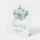Fall Blue Pumpkin Floral Boy Shower Favours Pedestal Sign