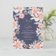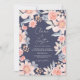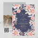 A pretty fall, modern, chic and elegant wedding invitation with custom names with a hand written calligraphy, with a pretty dusty blue, light peach, pink and orange floral touch and 1 photo, add your QR code for rsvp , wedding details and more on navy blue. All the text, names and background colours are customisable. A simple and minimalist invitation featuring pretty garden autumn flowers .