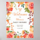 Welcome guests to your autumn baby shower with this charming hand-painted fall-themed welcome sign. Featuring vibrant watercolor florals and pumpkins in rich shades of orange, red, and green, this sign perfectly encapsulates the warmth of the season. The elegant script font warmly greets your guests .This festive and inviting sign sets the perfect tone for a memorable celebration. Featuring bows, pumpkin and foliage on an editable white background.
