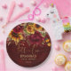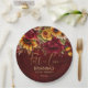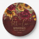 Fall in love bridal shower Burgundy roses yellow sunflowers greenery burgundy background personalised paper plates.