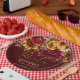 Fall bridal shower burgundy roses sunflowers paper plate
