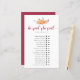 So pleased with this product! It showed up on time and in perfect condition. Affordable and of good quality. I ordered 30 for my friend’s bridal shower and they were all accounted for. The bride LOVED them and we had a lot of fun customizing the answers. Would recommend to anyone hosting a bridal shower or bachelorette party with people who like to play fun games! All the guests got really into it! Spot on colors and the paper felt of good quality, as well, though perhaps could be a bit thicker in general. (I ordered the thickest option)