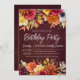 Fall Burgundy Flowers Chic Script 30th Birthday Invitation