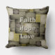 Fall Colour Blocks Square Throw Pillow. Gorgeous Autumn Greys and green mottled colour blocks. Set the stage for the season. Keep the Quote "Faith, Hope, Love" or add your own phrase or monogram. Modern, contemporary pattern.