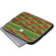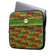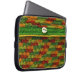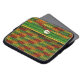 Image printed on electronics bag is from a photo of original crochet work designed handmade and Copyright © by published designer Delores Chamblin. The picture of a front section of the unique handcrafted clutch bag made with orange green and gold autumn colours yarn and African cowrie shell is reproduced on the travel case.