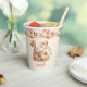 Autumn beary 1st Birthday baby Paper Cups with cute teddy bear in a pink hat, pumpkins, fall plants, big wooden number one and balloons. Easily personalise the name. Please visit the store for the full line of products that are available - Kate Eden Art