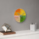 The clock did not take as long to arrive as I thought it might and was extremely well packaged. I didn't do the measurements so I didn't realize it is a little smaller than the average clock but that does not matter (just make sure you check if that's important to you).It is really nifty! It seems very solid and well made not flimsy at all. It has been going well and has kept good time in its few weeks on my wall. Nice product. Gets noticed too! Nicer in real life than the picture but true to the picture
