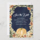 Fall Earthy Floral Pumpkin Navy Blue Wedding Save The Date