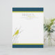 Elegant bird perched on branch with a subtle damask print and chartreuse contrast colour and silver accents.