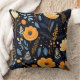 Fall Elegant Orange Flowers Blue Leaves Black Cushion
