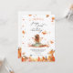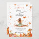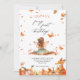 Fall Fairy First Birthday Invitation with a Fox and a pixie with wings and fall leaves an pumpkins
