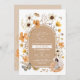 Embark on a magical adventure with our invitation, where innocence, wonder, and the allure of nature converge into a whimsical celebration of your little one's special day. Stealing the spotlight is a sweet and endearing fairy, whose ethereal presence is brought to life through delicate wings and a petite form. She's surrounded by a mesmerising tapestry of boho wildflowers in warm, earthy fall tones of orange, beige, and mustard, creating a dreamlike atmosphere.