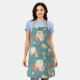 Fall Floral Autumn Pumpkin Foliage Teal Blue Name Apron