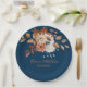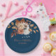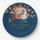Fall Floral Bouquet Navy Blue Wedding Paper Plates