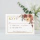 Fall is a beautiful time for a wedding, and the colours of this wedding Response Card show it. Soft earth tones of rust, brown, tan and cream with earthy green foliage and a faux gold border. This card, which is part of the Fall Floral Bouquet Wedding Invitation Suite of cards created by Simply Farmhouse Press, is also available without the gold splattering for a simpler look.