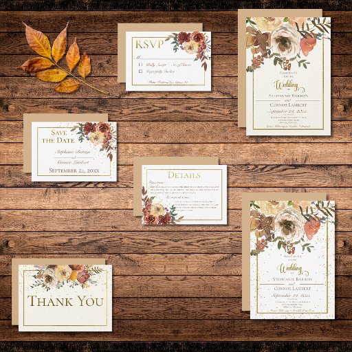 Fall Floral Bouquet w/Gold Wedding Suite CardsDesigned by Kathe Santillo