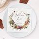 This is a napkin, using a modern watercolor rustic floral and botanical autumnal wreath design. The colour palette features fall colours such as burgundy, burnt orange, terracotta, deep green, berry colours and gold.