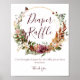 This is a rustic and boho diaper raffle baby shower sign printed on a value poster which is also downloadable for you to print youurself. The design uses a bohemian autumnal watercolor floral and botanical wreath design. The colour palette features rich fall colours such as burgundy, burnt orange, terracotta, deep green, berry and gold. This would be perfect for a rustic or fall themed baby shower and would also perfectly match the other items in the collection for a beautiful and elegant autumn baby shower. Easily customise all of the text as required using the provided text template. Please contact the designer for any queries regarding this design or for any matching products that aren't available.
