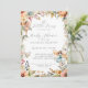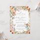 5x7 vertical ENCHANTED FAIRIES FALL AUTUMN FLORAL BABY SHOWER - Light and airy white background version | Colourful fairy garden flowers in a border of pure white and flower colours of amber, peach, and dusty blue with fall leaf foliage. On the reverse side is the same image with an adorable fairy A complete set of products are available for purchase in the collection. MSP0114