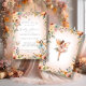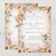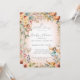 5x7 vertical ENCHANTED FAIRIES FALL AUTUMN FLORAL BABY SHOWER - warm blush pink background version | Colourful fairy garden flowers in a border of pale pink and flower colours of amber, peach, and dusty blue with fall leaf foliage. On the reverse side is the same image with an adorable fairy A complete set of products are available for purchase in the collection. MSP0114