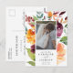This floral photo save the date is perfect for fall weddings. The autumn-themed save the date postcard features lovely watercolor flowers and fall foliage in pretty fall colours like plum, golden yellow, peach, and olive green. The fall flowers are arranged in a bouquet behind a photo and wedding details. Add additional wedding details, including your wedding website, to the back of the card.