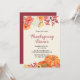 This rustic fall design features pumpkins, with warm fall orange salmon red burgundy watercolor flowers and leaves on cream white background. Features a nice handwritten typography design. Burgundy colour at the backing. Great for your Friendsgiving or Thanksgiving Dinner party. #3342