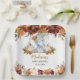 Chic Autumn / Fall Floral Elephant Girl Baby Shower square paper plates, featuring a cute baby elephant and watercolor orange and burgundy floral adorned pumpkins. Personalise these gorgeous plates with your party details easily and quickly, simply press the customise it button to further re-arrange and format the style and placement of the text. Matching items available in store!