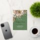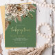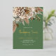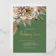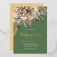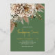 This gold foil Thanksgiving Dinner invitation features an elegant fall floral graphic accented in shades of golds and browns. The background is sage green and showcases gold foil text.