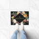 Make a lovely first impression to your guests and visitors with this personalised welcome doormat with a diamond shaped frame of fall coloured flowers. Colours include burgundy, pink, orange, salmon and off-white with mixed greenery throughout. Edit the sample text with your family name or other desired text.