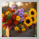 A high-quality graphic showcasing a beautiful and diverse collection of fall flowers. The vibrant colours and natural setting make this a perfect design for a variety of products, bringing the warmth of autumn indoors.