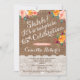 Fall-themed surprise 65th birthday invitations for a female. The invites feature a burlap lace background with watercolor flowers in muted spice tones.
