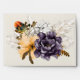 Ivory coloured Fall wedding invitation envelope, with graphics of purple and yellow flowers, pampas grass and a colourful feather, decorate the back. The inside of the envelope has a dark purple on purple floral flourish damask pattern. Personalise the return address, on the front, for your special day. Matching wedding invitations are available.