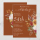 This design showcases elegant floral elements in autumn shades of gold, burgundy, greens and beige on terracotta font for a birthday party invitation. Explore the collection on this page to find coordinating items in this design.