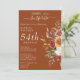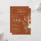 This design showcases elegant floral elements in autumn shades of gold, burgundy, greens and beige on terracotta font for a surprise birthday party invitation. Explore the collection on this page to find coordinating items in this design.