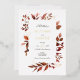 Capture the essence of fall with this Rustic Autumn Leaves Wedding Invitation Set. The design features a charming arrangement of warm, autumnal leaves in shades of burgundy, gold, and brown, framing your wedding details beautifully. The invitation is printed on high-quality cardstock, giving it a luxurious feel that your guests will admire. Perfect for fall weddings, this invitation set blends rustic charm with elegant design, making it an ideal choice for couples looking to celebrate their love surrounded by the beauty of autumn.