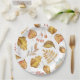 Fall party plates with leaves and acorns that are perfect for all of your fall events! White background with autumn theme.
