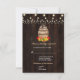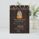 Fall Foliage Wine Barrel String Lights card design featuring a watercolour wine barrel, gorgeous fall foliage, string lights, wine bottle, wine glass and traditional farm foods on the barrel, all on an old barn. Use Customise tool to add your info. You can change fonts, colours. For matching items, please, visit my Fall Foliage Wine Barrel Collection.