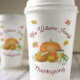 Celebrate Thanksgiving and all the Autumn festivities with these decorative paper cups. Perfect for s'mores around the fire pit, snacks during the big game or dessert on Thanksgiving. Personalise with any name, names or family name and event name.