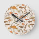 Fall Fungi and Leaves - seamless pattern. Round Clock