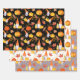 This is a cute set of gnomes, pumpkins and fall leaves wrapping paper in black, white and grey background colours.