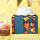 Fall golden orange leaves navy blue background wrapping paper