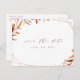 Rustic watercolor fall botanical foliage greenery and faux copper foil leaves and geometric frame, with trendy "save the date" script, simple and elegant, great for fall rustic wedding, winter botanical garden wedding.