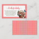 Introducing our enchanting fall harvest Baby Shower books for baby Enclosure Card in pink, red, and white colours. A chic fruit theme baby shower with watercolor pink, red, and green leaves, and an apple basket on the front with editable book request details, and plaid on the backside of the card for an orchard-inspired celebration. script, and stylish calligraphy. #applebabyshower #appleofoureyebabyshower #applethemebabyshower #applethemebookforbaby #plaidbookrequest