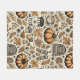 This charming vintage-style fall pattern features autumn leaves, pumpkins, acorns, cinnamon sticks, and cosy sweaters, bringing the warmth of the season to life. With its intricate hand-drawn illustrations, the design captures the essence of autumn, including playful touches like pumpkin spice lattes and warm socks. The cosy and whimsical details make it ideal for adding a festive touch to any space.