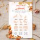 Engage your guests with this captivating Fall-themed 'Pregnant Animals' game card, perfect for adding an educational twist to your baby shower! Featuring a beautiful watercolor design of plump pumpkins and delicate autumn leaves, accented with subtle golden speckles, this game card perfectly blends with your seasonal decor. Guests will enjoy matching various animals to their average pregnancy durations, sparking lively discussions and fun competition. It's a fantastic icebreaker and a memorable activity for all attendees. Easily incorporate any specific event details or customised instructions to make this game uniquely yours. Ideal for autumn baby showers, rustic gatherings, or harvest-inspired celebrations, ensuring a delightful and insightful time.