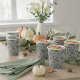 These Thanksgiving pattern paper cups feature a Fall harvest scene of pumpkins, autumn leaves, acorns and berries against an elegant sage green background.