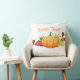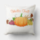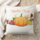 This throw pillow is shown in a autumn fall pumpkin print with a white background colour.