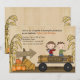 If hayrides are on your birthday-planning list, this cute fall-theme invitation is perfect for either gender. It features corn stalks, pumpkins, hay, a hayride wagon and a happy girl and boy.