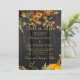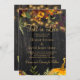 Beautiful rusty burnt orange and dark burgundy autumn fall flowers and pumpkin borders with strings of golden twinkle lights over a dark brown barn wood background making a charming elegant Fall in Love wedding invitation with a trendy handwriting gold typography script. +++++++++ Easy to personalise with your details! Suitable for traditional autumn fall rustic country farmhouse outdoor backyard weddings.