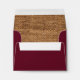 Send out an eye-catching wedding invitation package to all your family and friends with this rustic autumn wedding RSVP card envelope that coordinates with the wedding collection shown below. The envelope is a burgundy wine colour that matches the invitation, and it has a small cluster of autumn leaves and a twine bow with tails on the back flap of the envelope. Your name or the name and address of the person collecting the RSVP cards is printed in tan on the front side. If you need additional matching items, please email your request to niteowlstudio@gmail.com or use the Zazzle chat feature to get in touch.